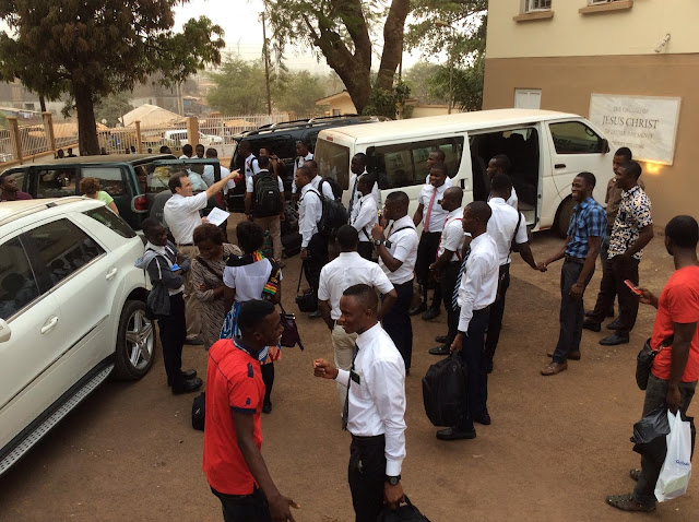 Members from Sierra Leone wait to greet Elder Gary E. Stevenson of the Quorum of the Twelve Apostles.